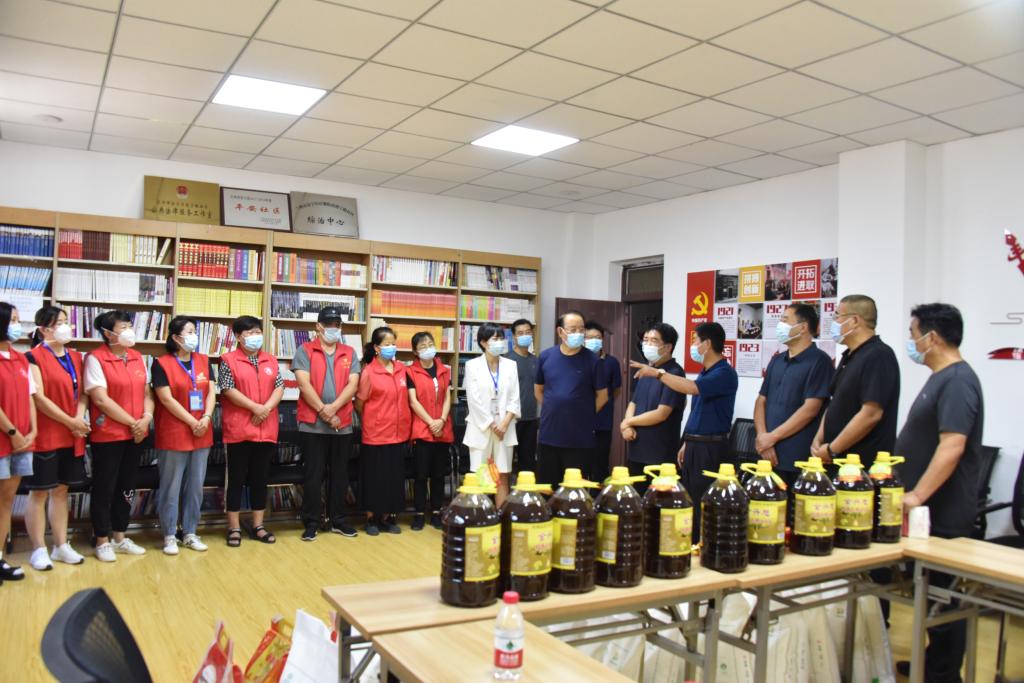 为助力社区疫情防控工作,齐心协力打赢疫情防控阻击战、歼灭战,725日,常务副校(院)长刘进军同志带领校(院)疫情防控相关人员,共同走进培黎街道建宁路社区,看望慰问社区一线防疫工作者,并送去了米、面、食用油和口罩、酒精等防疫保障物资。副校(院)长杨文福,校(院)委委员、组织部部长张志泰,办公室、保卫处、机关党委、防控办、后勤服务中心负责同志,工会主席一同参加慰问。