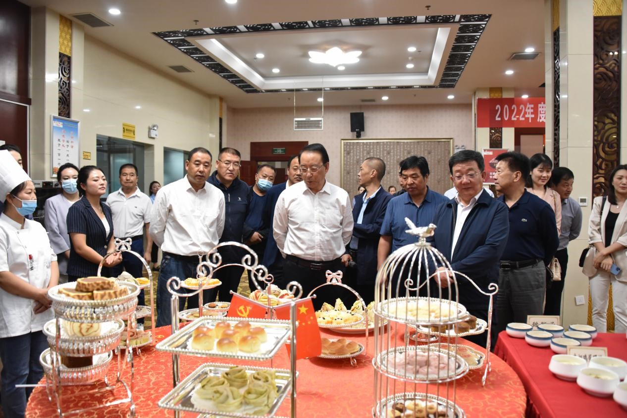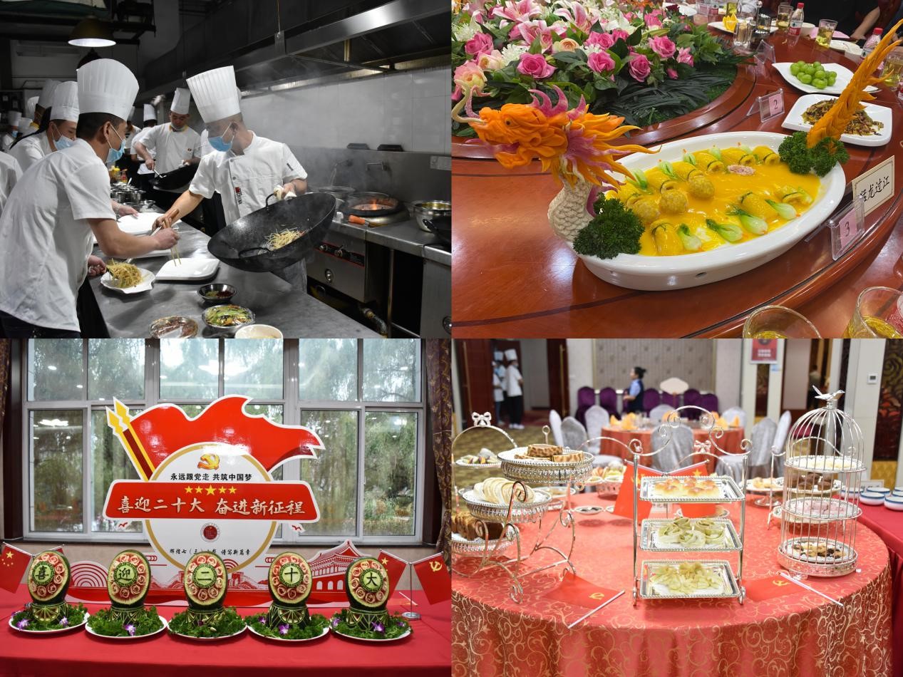 餐饮技能比赛项目通过对指定菜品和自选菜品的选料、加工等实操环节的比拼,全面考核5名选手们的刀工、摆盘、菜品色香味等方面技能。展示大厅的刀工展示区、兰州特色食品展区、创新菜品展区中琳琅满目的参赛作品全方位展示了参赛选手的厨艺技能,尤其选手们的雕刻作品特别是用西瓜雕刻“喜迎二十大”字样的作品,更是赢得到场领导及与会代表频频驻足观赏和一致好评。