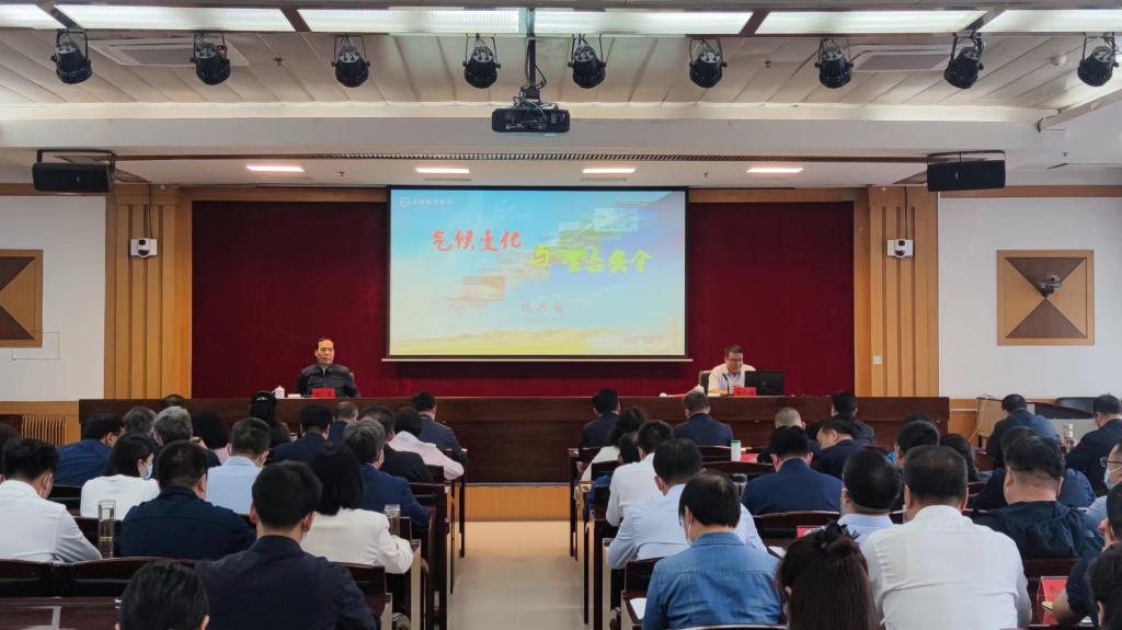 (通讯员 李晨旭9月23日下午,省气象局党组书记、局长杨兴国应邀来校(院)为中青班作了题为《气候变化与生态安全》的专题辅导报告,报告会由副校(院)长杨忠主持。
