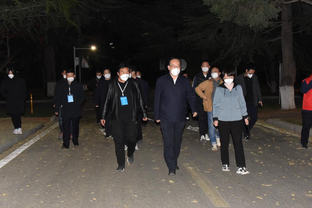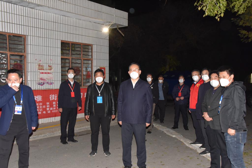 (宣传报道组)1027日晚八时许,常务副校(院)长刘进军带领校(院)防控办工作人员深入校(院)疫情防控各工作点位,就校(院)疫情防控工作进行再次督导检查和部署安排。副校(院)长、校(院)疫情防控工作领导小组办公室主任杨文福、安宁区委常委、组织部部长王玉媛和培黎街道、建宁路社区有关负责同志等一同参加督查。