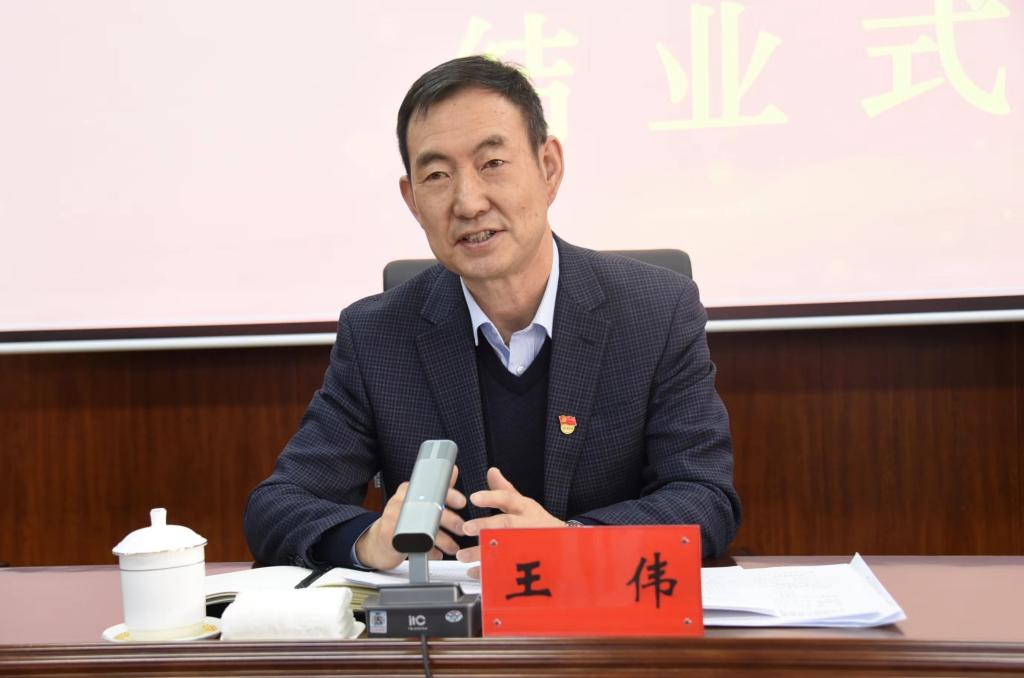 王伟首先代表校(院)委对培训班顺利结业表示祝贺,并为学员颁发了结业证书。他对学员取得的重要收获给予了充分肯定。他指出,大家通过在党校的学习,解决了理论上的困惑,理清了工作思路,补齐了能力短板,实现了学有所获,比较圆满的完成了学习培训任务。学习贯彻党的二十大精神,是当前和今后相当长一个时期党和国家的首要政治任务。学习贯彻党的二十大精神,必须原原本本、逐字逐句学习党的二十大报告,坚持整体把握、全面系统,深入理解内涵,精准把握外延,在全面学习上下功夫,在全面把握上下功夫,在全面落实上下功夫。要深刻领会党的二十大的主题,深刻领会过去5年的工作和新时代 10 年的伟大变革,深刻领会开辟马克思主义中国化时代化新境界,深刻领会新时代新征程中国共产党的使命任务,深刻领会中国式现代化的中国特色和本质要求,深刻领会社会主义经济建设、政治建设、文化建设、社会建设、生态文明建设等方面的重大部署,深刻领会教育科技人才、法治建设、国家安全等方面的重大部署,深刻领会国防和军队建设、港澳台工作、外交工作等方面的重大部署,深刻领会坚持党的全面领导和全面从严治党的重大部署。