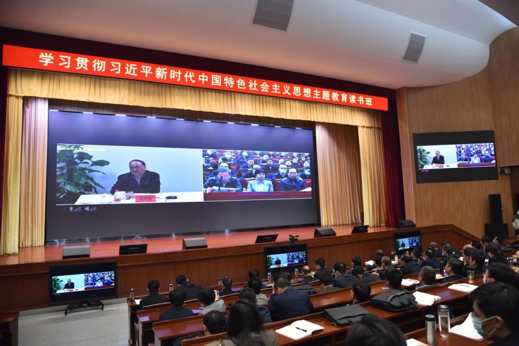 (通讯员 杜江北)根据校(院)委会主题教育读书班安排,4月26日上午,中央党史和文献研究院第一研究部原主持工作的副主任、一级巡视员张贺福研究员以视频连线方式为校(院)作辅导报告。常务副校(院)长唐斫出席,其他校(院)委成员,一级巡视员、二级巡视员,全体党员、干部,参加学习的第一批主题教育单位在校主体班次学员,共520余人参加。副校(院)长袁凯主持辅导报告会。