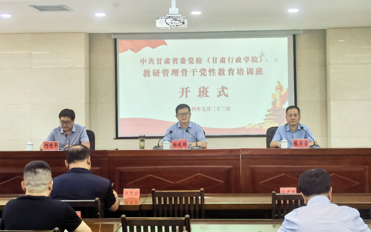 (通讯员  王彤)7月22日下午,校(院)教研管理骨干党性教育培训班在定西市委党校(市行政学院)开班,校(院)副校(院)长徐建群作培训动员讲话,定西市委党校市行政学院)常务副校(院)长张军学出席开班式并致欢迎辞