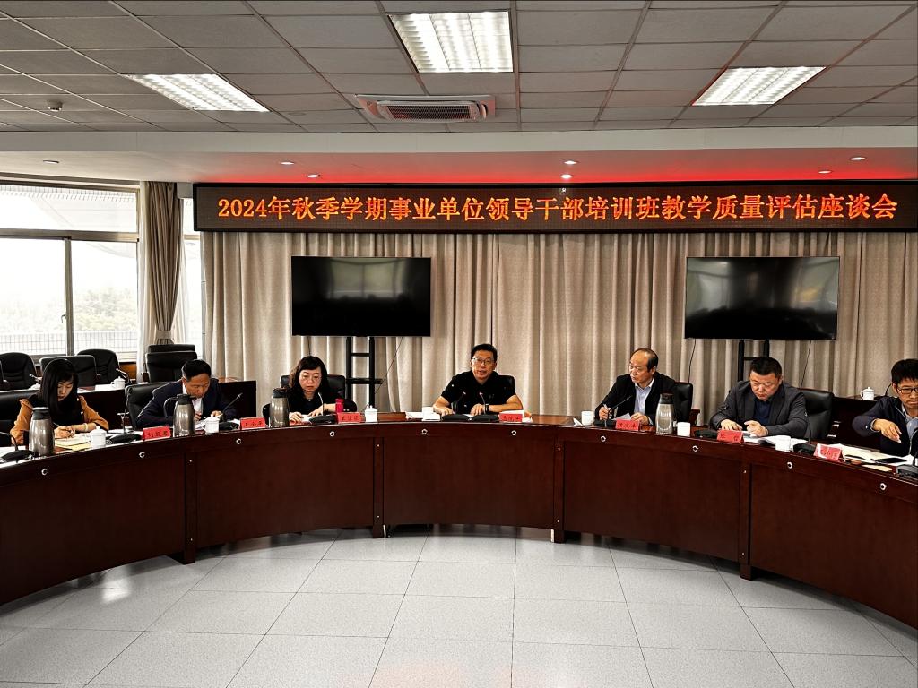 (通讯员 周晓瑞)9月12日上午,省一级干部教育培训项目质量评估组,对事业单位领导干部培训班开展教学质量评估,副校(院)长李秉文出席会议,教务处、进修部、培训部负责同志参加会议。