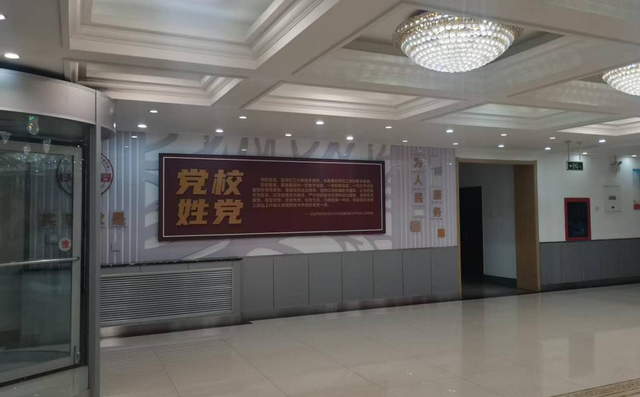 党性教育展板:一楼大厅设置四大核心展板,集中展示习近平总书记关于“党校姓党”“为党育才、为党献策”的重要论述,以及校(院)办学目标与发展思路。增设“不忘初心、牢记使命”主题墙,强化育人使命的政治认同。