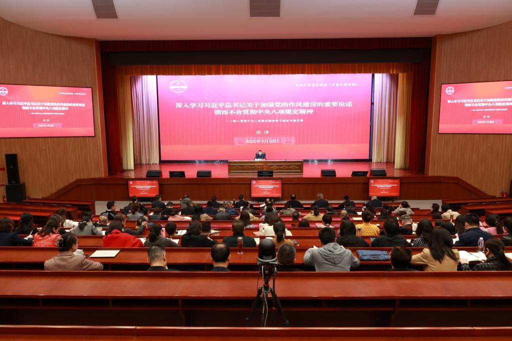 (通讯员 厍文妍)为深入学习贯彻中央八项规定精神,持续抓好作风建设,4月10日上午,副校(院)长张诤为分管部门讲授作风建设专题党课,10个部门共计105人参加党课学习。