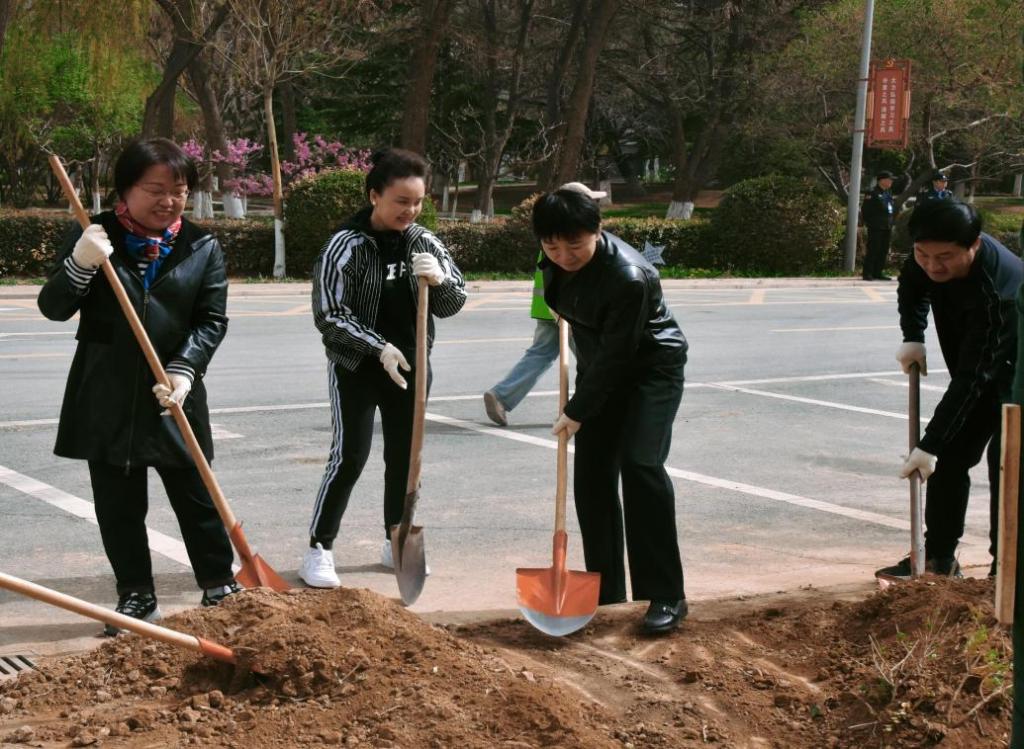 春风和煦,绿意萌动。上午10时许,唐斫前往校(院)植树点,同干部职工一同参加义务植树。植树现场,干部职工们兴致高昂、分工明确,大家挥锹铲土、扶树正苗,培土围堰、提桶浇水,严格按照技术要求,认真完成每一道工序,确保树苗的成活率。经过大家的辛勤劳作,一株株苗木整齐排列,为初春的校园增添了勃勃生机。