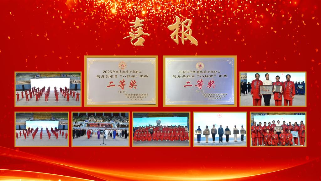 12月10日至11日,2025年省直机关干部健身类项目八段锦比赛中,校(院)代表队经过初赛、复赛两轮激烈角逐,喜获团体二等奖;校(院)教职工王俪颖喜获个人二等奖。