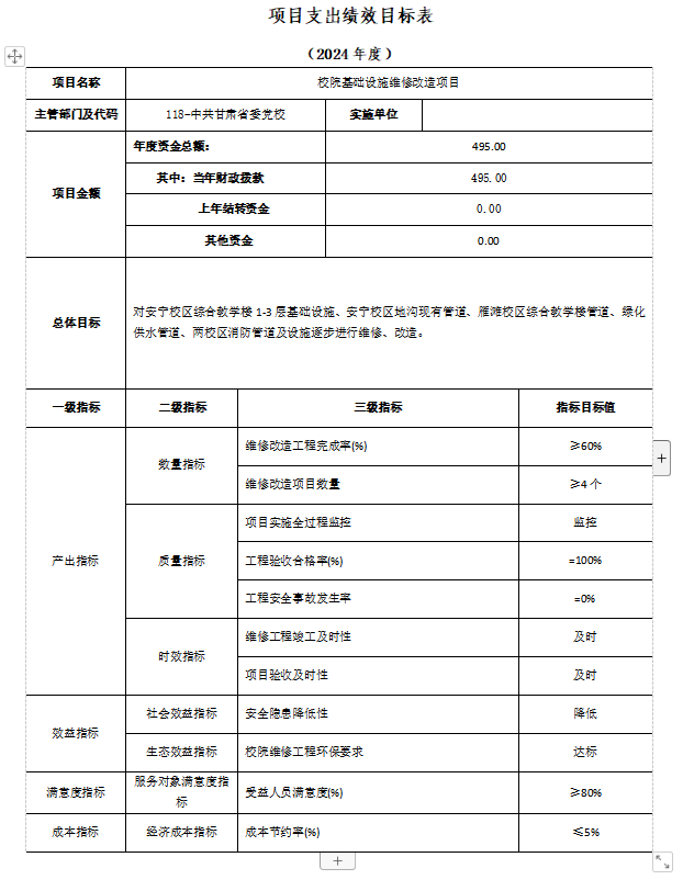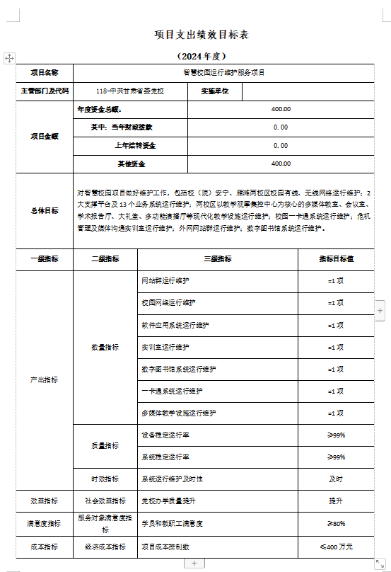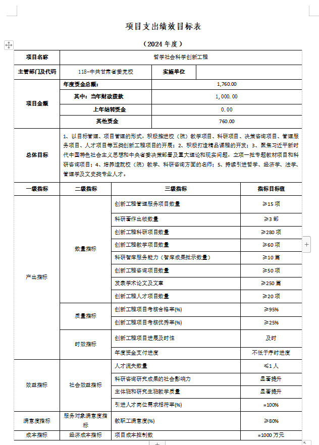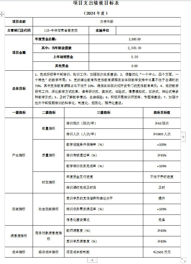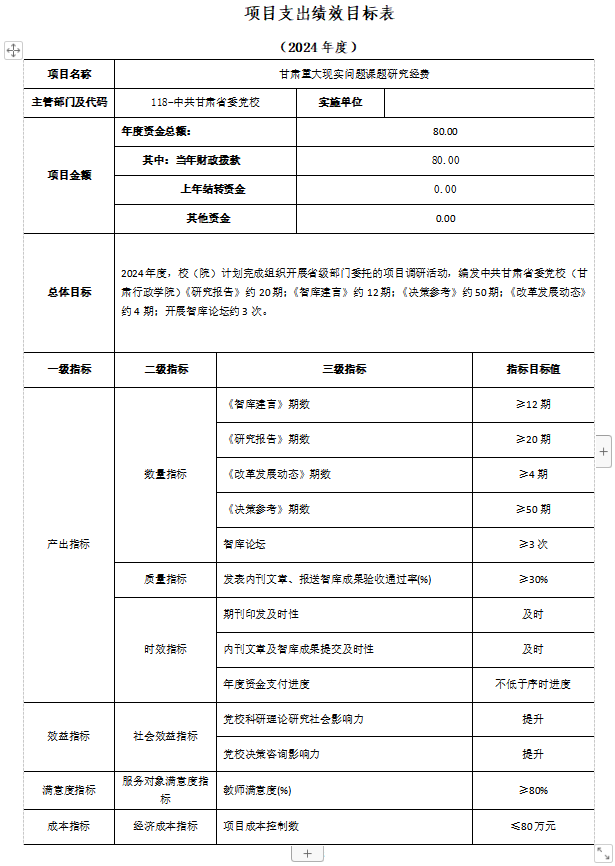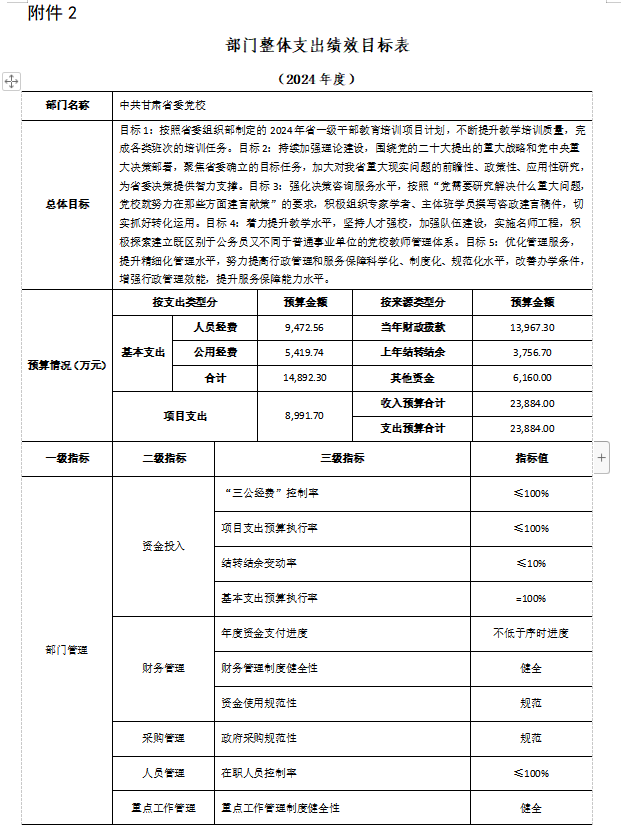 2.中共甘肃省委党校2024年部门整体支出绩效目标及预算项目绩效目标表.docx