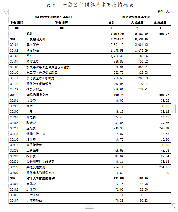 其中:人员经费支出8,982.56万元,主要包括:基本工资、津贴补贴、奖金、绩效工资、机关事业单位基本养老保险缴费、职工基本医疗保险缴费、公务员医疗补助缴费、其他社会保障缴费、住房公积金、离休费、退休费、生活补助、医疗费补助。