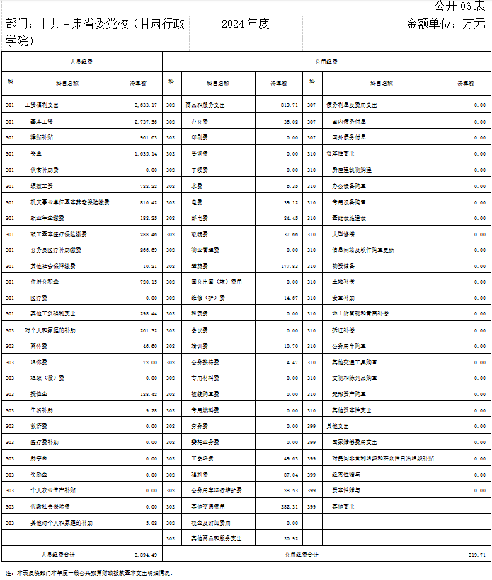 2024年度中共甘肃省委党校(甘肃行政学院)部门决算公开报告