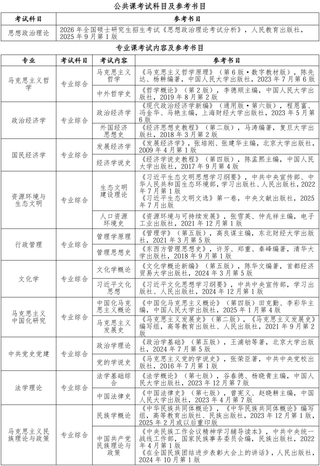 三、考试科目及参考书目