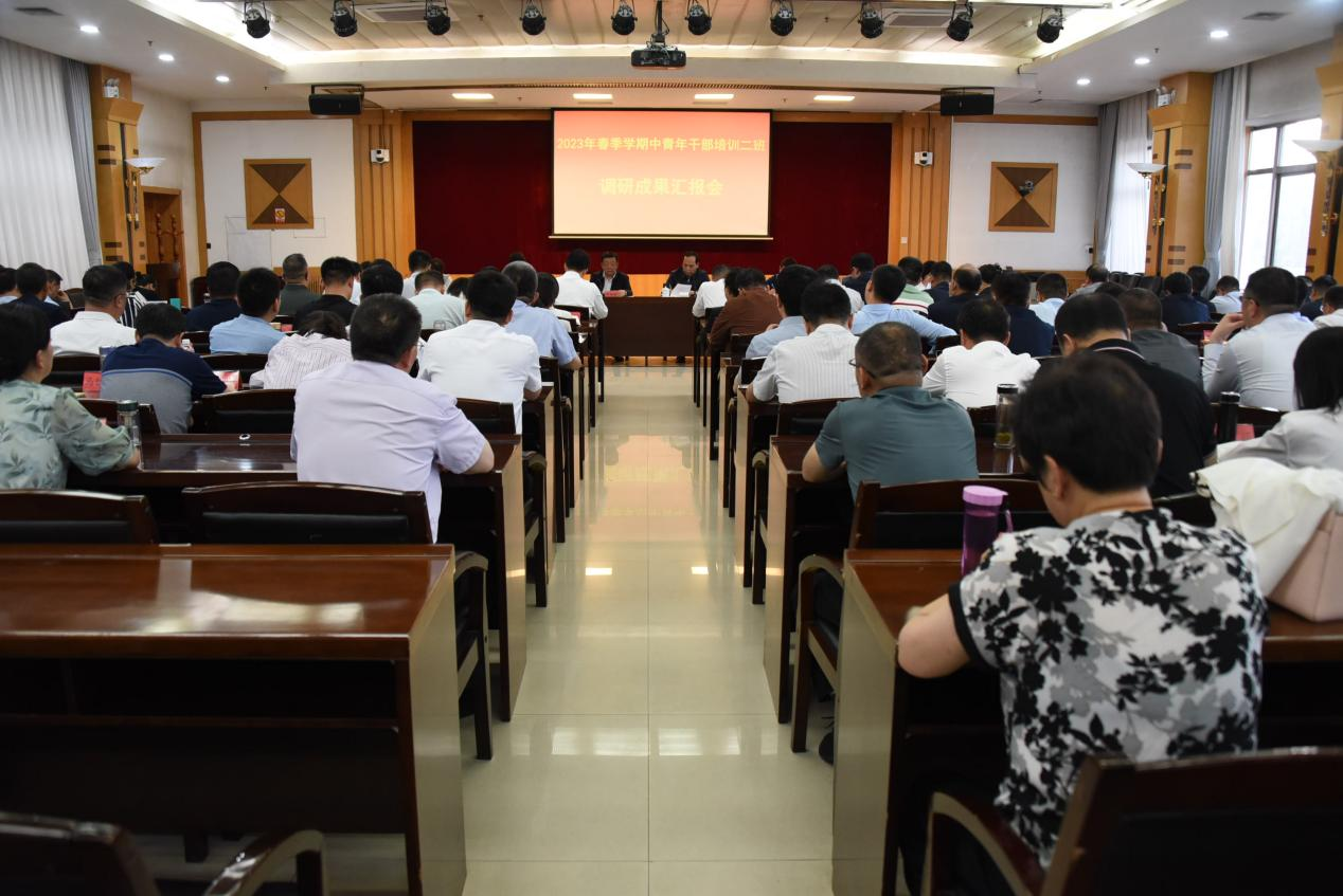第一期和第二期中青年干部培训二班正处级1班、正处级2班104人参加了汇报会。
