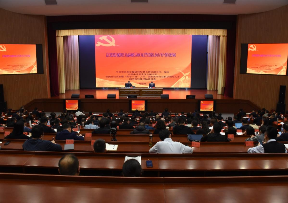 刘荣刚围绕反对历史虚无主义的几个问题这一主题,精准分析了历史虚无主义的由来、表现、实质、危害,全面讲解了新时代反对历史虚无主义的思路举措。报告指出树立正确党史观要坚持以党关于历史问题的两个决议和党中央有关精神为依据,要准确把握党的历史发展的主题主线、主流本质,要正确认识和科学评价党史上的重大事件、重要会议、重要人物,要旗帜鲜明反对历史虚无主义,加强思想引导和理论辨析,更好正本清源、固本培元。报告重点突出、观点鲜明、旁征博引、视野开阔、见解精辟,是一场深刻的党史、党性教育课。