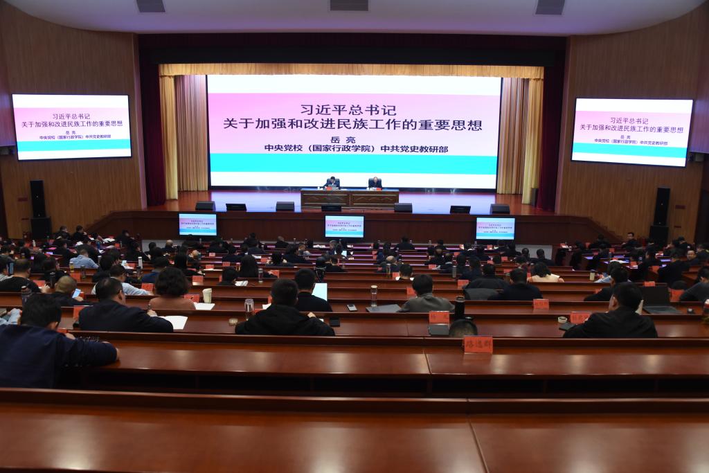 (通讯员 姬慧娜)1129日下午,校()邀请中央党校(国家行政学院)中共党史教研部社会主义革命和建设史教研室副主任、硕士生导师、历史学博士岳亮为在校主体班次学员作了题为《习近平总书记关于加强和改进民族工作的重要思想》的专题辅导报告,校(院)二级巡视员张立公主持报告会。