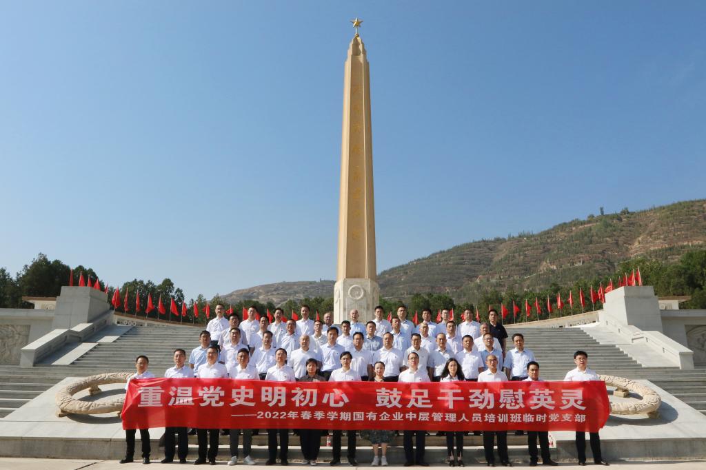 (通讯员 张鹤)为深切缅怀革命先烈的丰功伟绩和崇高精神,激励党员从革命烈士的英勇事迹和无私精神中汲取力量,教育广大党员传承红色基因、感悟初心使命,6月1日上午,2022年春季甘肃省国有企业中层管理人员培训班临时党支部组织全体学员在兰州烈士陵园开展以“重温党史明初心 鼓足干劲慰英灵”为主题的党日活动。
