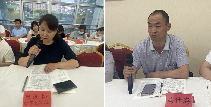 少数民族教师阿依木·吐尔克斯坦结合自身开展党性教育工作的实际,分享了党员学习教育推荐书目《共产党员的力量》,以树立新时代党员干部优良品质为主题谈了自己的看法和感悟。