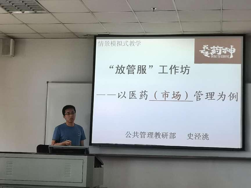第二组代表,来自中共兰州市委党校的史泾洮老师汇报了案例教学成果:“放管服工作坊”——以医药(市场)管理为例》