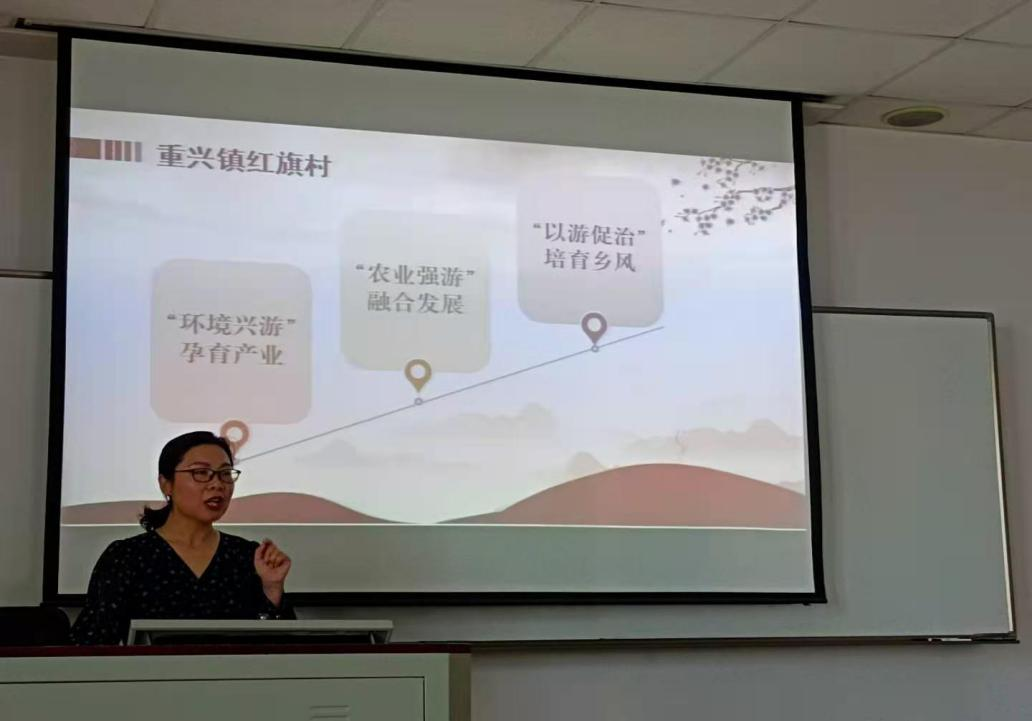第一组代表,来自中共武威市委党校的李海霞老师汇报了案例教学成果:风展红旗如画——抓党建促乡风文明培育的“红旗”模式
