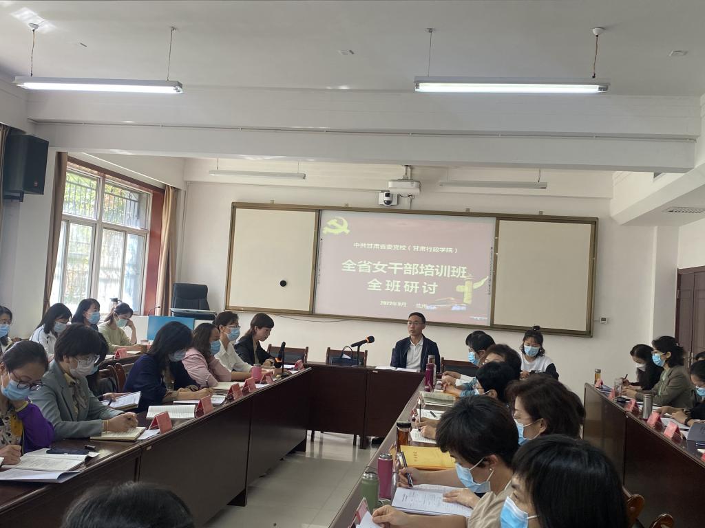 (通讯员 李芳  侯彩梅)9月3日下午,全省女干部培训班开展“学习习近平总书记在省部级主要领导干部专题研讨班上的重要讲话精神”专题研讨活动,全班46名学员参加了专题研讨,研讨会由班主任主持