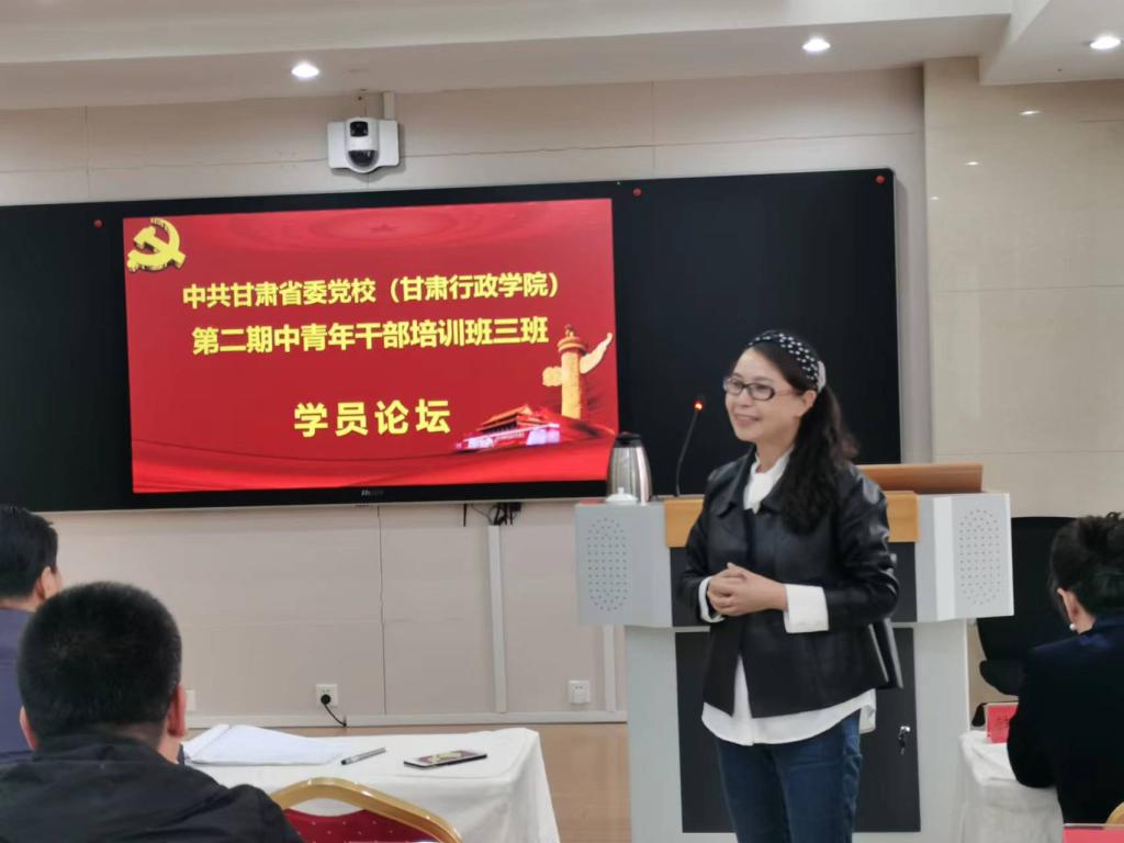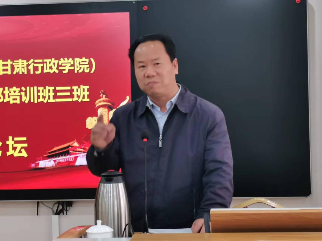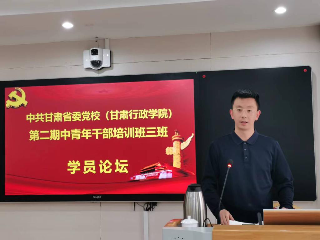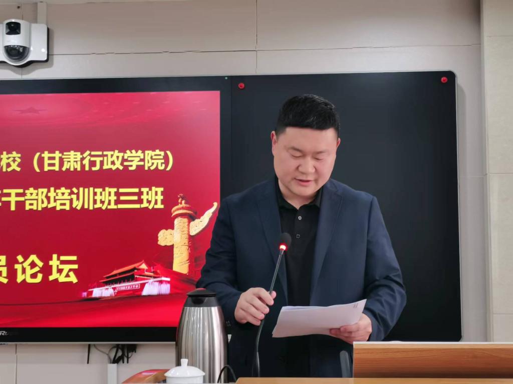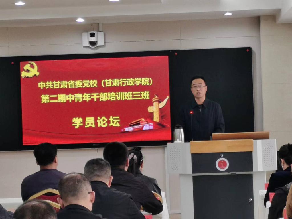 (通讯员 刘磊)5月11日下午,中共甘肃省委党校(甘肃行政学院)第二期中青年干部培训班三班学员论坛顺利举办,甘肃发展研究院院长张建君教授与马桂芬、翟晓岩、张瑞宇三位老师到教室具体指导。