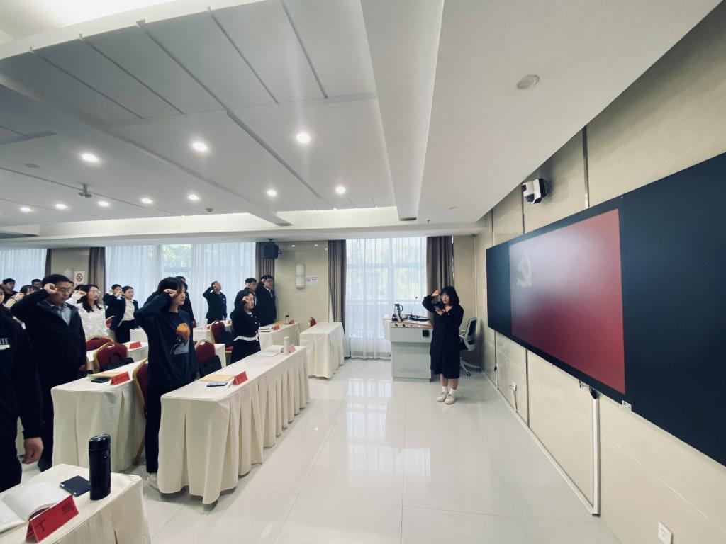 在读书活动开始前,支委组织全体学员面向党旗重读入党誓词,不忘入党初心,汲取前行量,努力践行“全心全意为人民服务”的宗旨。