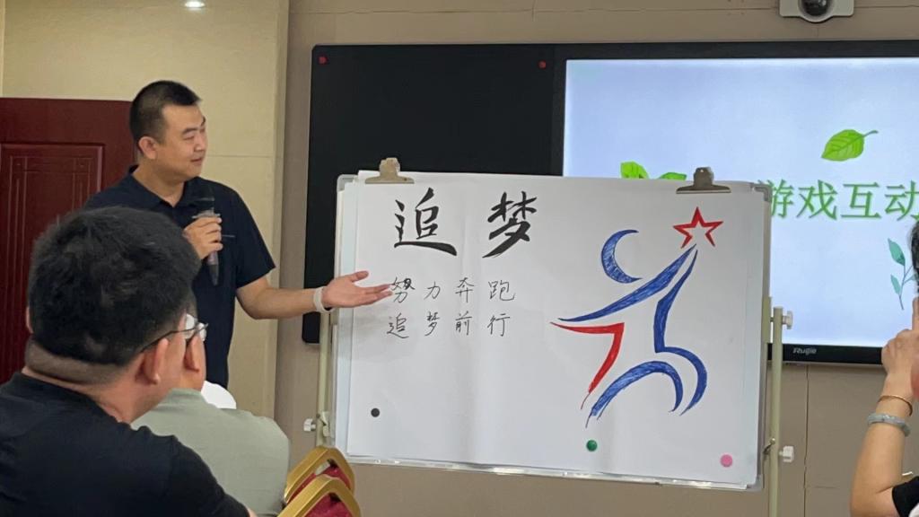 校(院)科学社会主义教研部三位老师精心组织,学员们通过自我介绍熟悉加深彼此印象,并按照分组开展热烈讨论。随后,学员在各自组长的带领下,热烈讨论,集思广益,分别设计出了富有创意的组名、组标和口号,又轮流展示亮相。一到四组分别取名为“追梦、启航、秋实、丽力”,寓意各位学员作为追梦人,在金秋到省委党校的学习是人生阶段一次新的启航,美丽的人生只要踔厉奋进,就能结出香甜的果实。完成小组任务后,各组按照训练要求,又进行了词组猜谜接龙的比拼。现场气氛活跃,笑语不断。