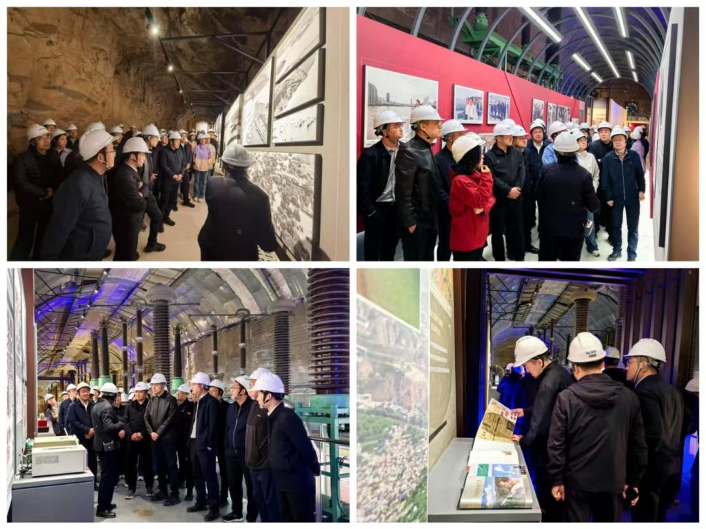 刘家峡水电作为我国自行勘测设计、制造设备、施工安装、调试管理的首座百万千瓦级水电站,实现了发电、防洪、防凌、灌溉、养殖、城市供水等综合功能,承载着新中国第一代建设者敢教日月换新天的豪情壮志让黄河成为了“造福人民的幸福河”。在讲解人员的带领下,学员们先后来到大坝、工业遗产博物馆330千伏开关洞,通过现场学、情景再现、聆听故事等方式,开展场景式、体验式、沉浸式教学。大家沿着历史走廊徐徐前行,精细的设计图纸、斑驳的施工工具、珍贵的历史影像,将那段万人会战刘家峡场景生动再现。站在混凝土重力坝前,得知面对国外技术封锁,老一辈建设者们响应毛主席视察黄河时“要把黄河的事情办好”的伟大号召,“没有条件创造条件也要上”的豪情,用竹筐运石、铁锤凿岩,自制简易起重机,肩扛手拉让高山低头让河水改道在荒山峡谷中开辟战场时,学员们十分震撼,因为这不仅是技术突破,更是一代建设者听党指挥、为国奉献的精神丰碑。走进博物馆,一幅幅老照片、一件件老物件,无声地诉说着工程建设的艰辛历程学员们的思绪到那个激情燃烧的岁月。中国第一台30万千瓦双水内冷水轮发电机组、中国第一座最大的水利电力枢纽工程、中国第一座最大的地下厂房……刘家峡水电厂“七个第一”的荣光,让大家见证中国水电从无到有、从弱到强的辉煌历程。从老一辈建设者的艰苦奋斗到新一代水电人的守正创新,红色基因在刘家峡水电厂得到了传承和发展,学员们也从中更加深切地感受到了带领人民群众走过的治黄足迹,了解了为电站建设奉献生命的先辈们的感人故事。