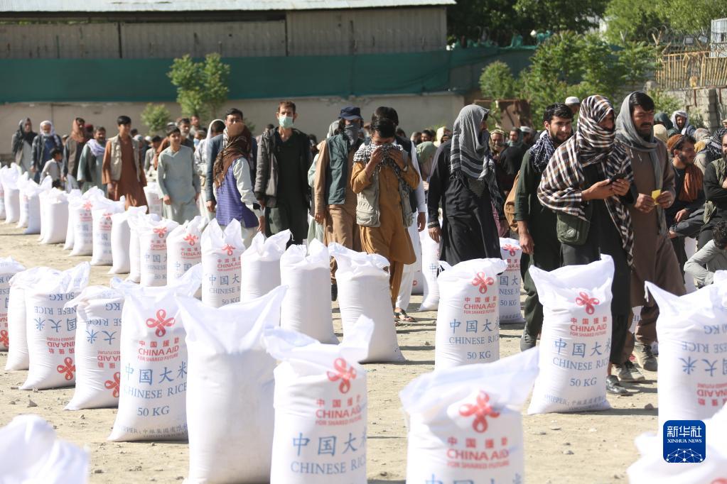 阿富汗民众在首都喀布尔领取中国援助的粮食(2022年4月23日摄)。新华社发(塞夫拉赫曼·萨菲摄)