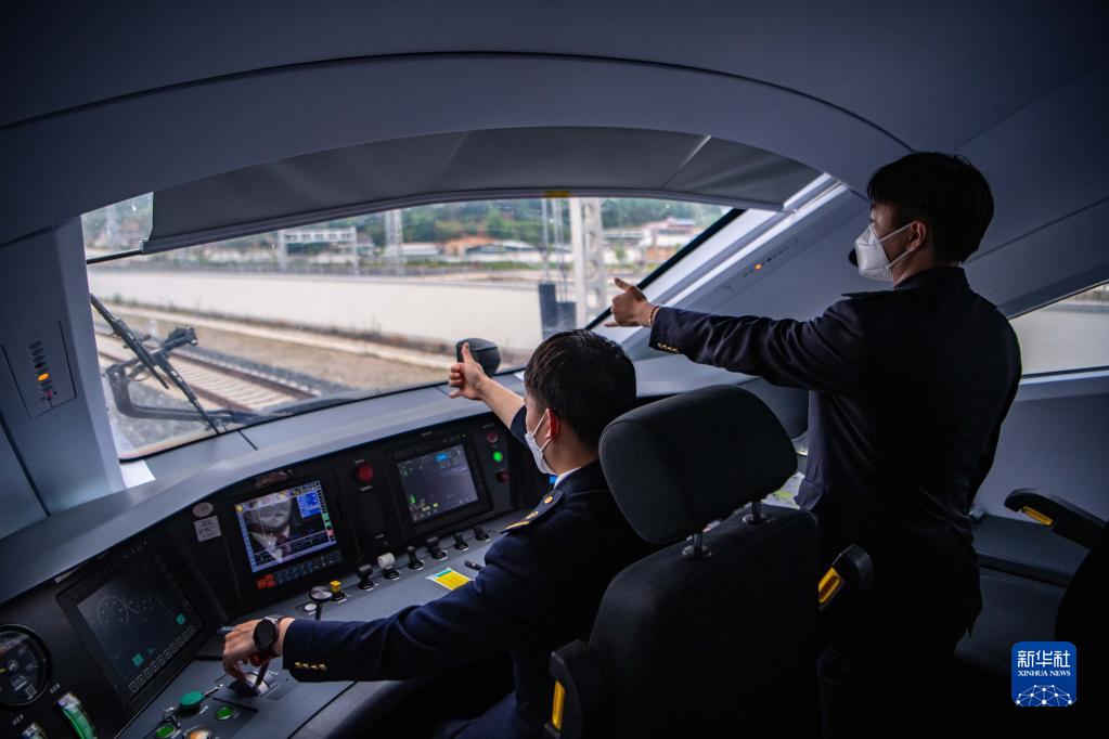 列车司机驾驶复兴号列车行驶在中老铁路上(2022年6月1日摄)。新华社记者 江文耀 摄