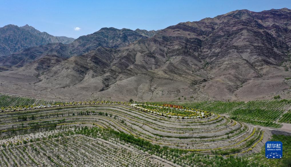 这是位于宁夏石嘴山市平罗县崇岗镇的贺兰山生态修复治理工程(6月14日摄)。新华社记者 冯开华 摄