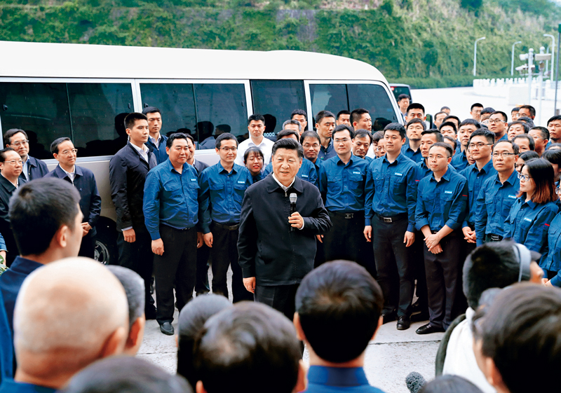 (2018年426日下午,中共中央总书记、国家主席、中央军委主席习近平在武汉主持召开深入推动长江经济带发展座谈会并发表重要讲话。这是座谈会前,习近平于24日下午在三峡大坝左岸电站考察。 新华社记者 谢环驰/)