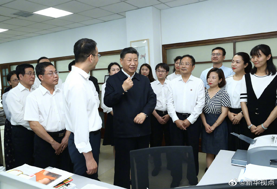 21日下午,正在甘肃考察的习近平总书记来到位于兰州市区的读者出版集团有限公司,了解企业历史沿革、出版发行、经营管理等情况,看望《读者》编辑部工作人员。习近平对大家说,人民群众多读书,我们的民族精神就会厚重起来、深邃起来。要提倡多读书,建设书香社会。(文字记者:张晓松、朱基钗 摄影记者:鞠鹏、谢环驰