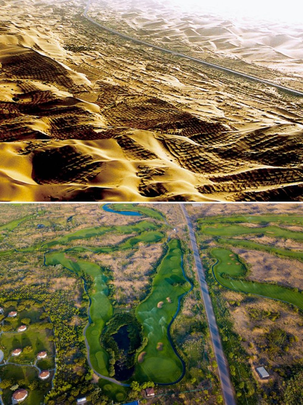 经过30余年的艰苦治理,中国第七大沙漠——内蒙古库布其沙漠,从原是飞鸟难越的死亡之海,变为如今沙峰绿谷交相辉映。