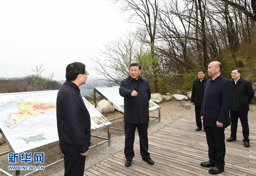 4月20日至23日,中共中央总书记、国家主席、中央军委主席习近平在陕西考察。这是4月20日,习近平在位于秦岭山脉东段的牛背梁国家级自然保护区月亮垭,察看秦岭自然生态,了解陕西省吸取秦岭北麓违建别墅问题教训、抓好生态保护等情况。 新华社记者 谢环驰 摄
