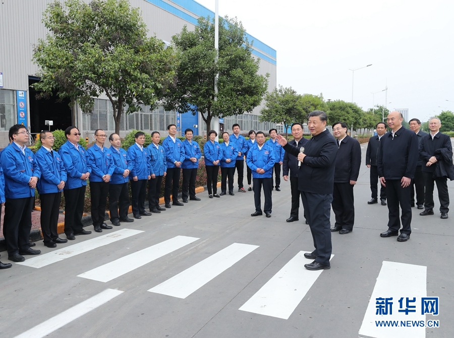 4月20日至23日,中共中央总书记、国家主席、中央军委主席习近平在陕西考察。这是4月22日,习近平在陕西汽车控股集团有限公司考察时,同企业职工亲切交流。 新华社记者 鞠鹏 摄