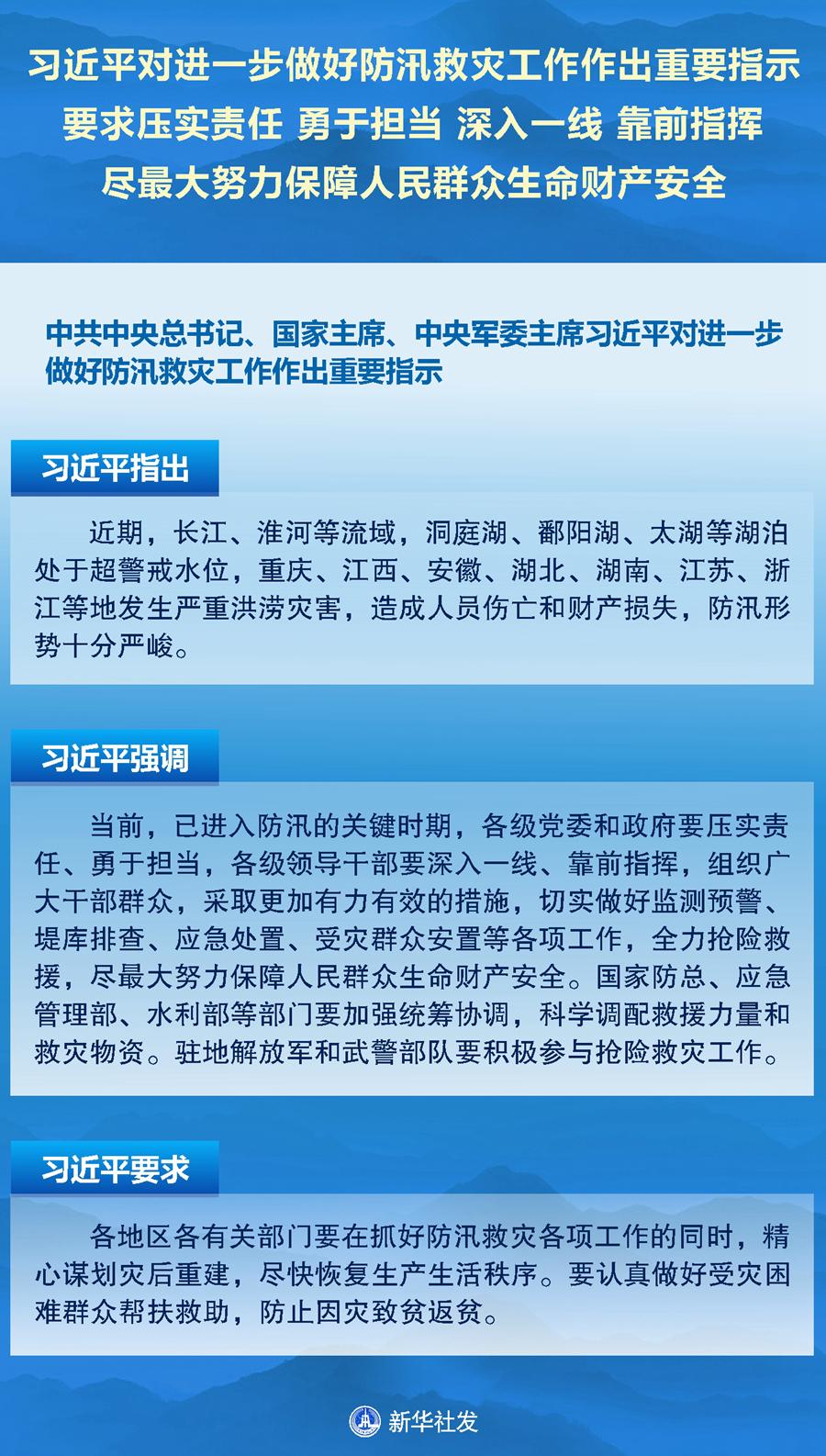 习近平对进一步做好防汛救灾工作作出重要指示 要求压实责任 勇于担当 深入一线 靠前指挥 尽最大努力保障人民群众生命财产安全
