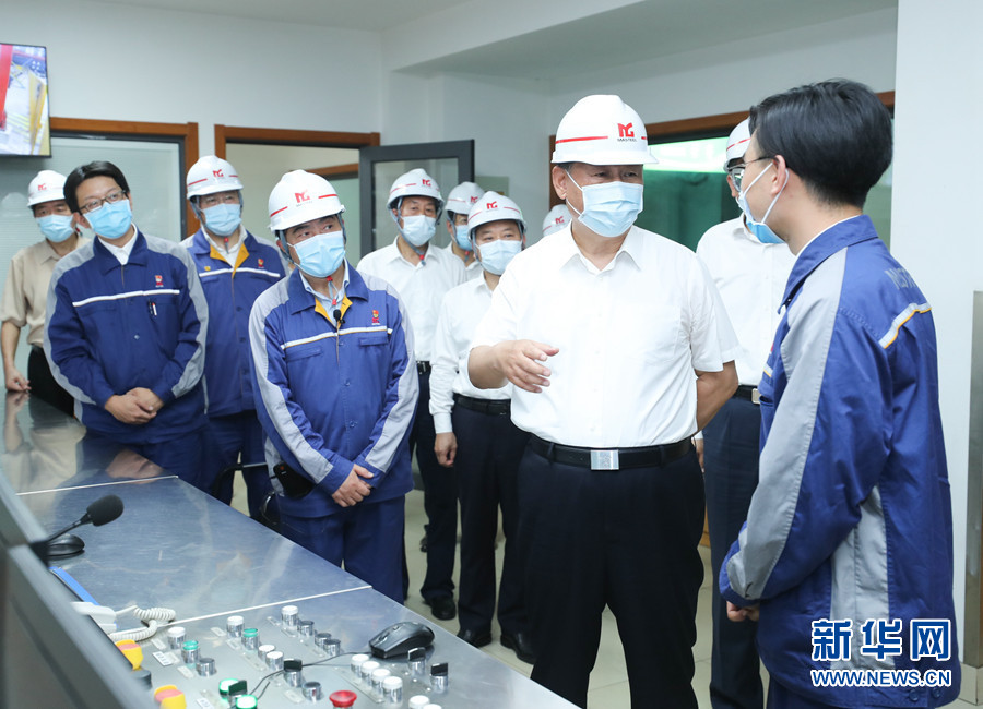 8月18日至21日,中共中央总书记、国家主席、中央军委主席习近平在安徽省考察。这是19日上午,习近平在马鞍山市中国宝武马钢集团优质合金棒材车间考察,了解企业复工复产和经营情况。 新华社记者 鞠鹏 摄