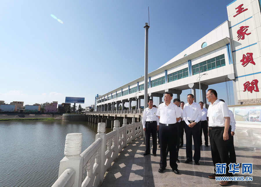 8月18日至21日,中共中央总书记、国家主席、中央军委主席习近平在安徽省考察。这是18日下午,习近平在阜阳市阜南县王家坝闸考察,了解安徽省防汛工作及王家坝开闸分洪情况。 新华社记者 王晔 摄