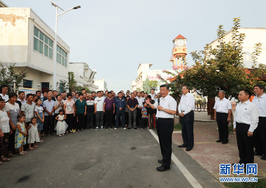 8月18日至21日,中共中央总书记、国家主席、中央军委主席习近平在安徽省考察。这是18日下午,习近平在阜阳市阜南县蒙洼蓄洪区曹集镇利民村西田坡庄台,看望慰问受灾群众。 新华社记者 鞠鹏 摄