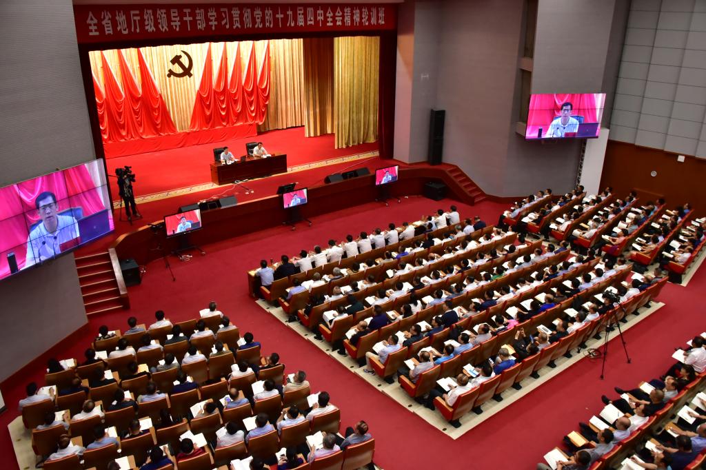 第三期全省地厅级领导干部学习贯彻党的十九届四中全会精神轮训班,第55期中青年干部培训二班,第七期、第八期公务员初任培训班等班次学员,校(院)领导班子成员和副处级副教授以上干部共700余人聆听了专题辅导报告。全省党校(行政学院)系统教职工分别在14个市(州)和86个县(市、区)的102个分会场通过远程视频会议系统同步收听收看专题辅导报告。