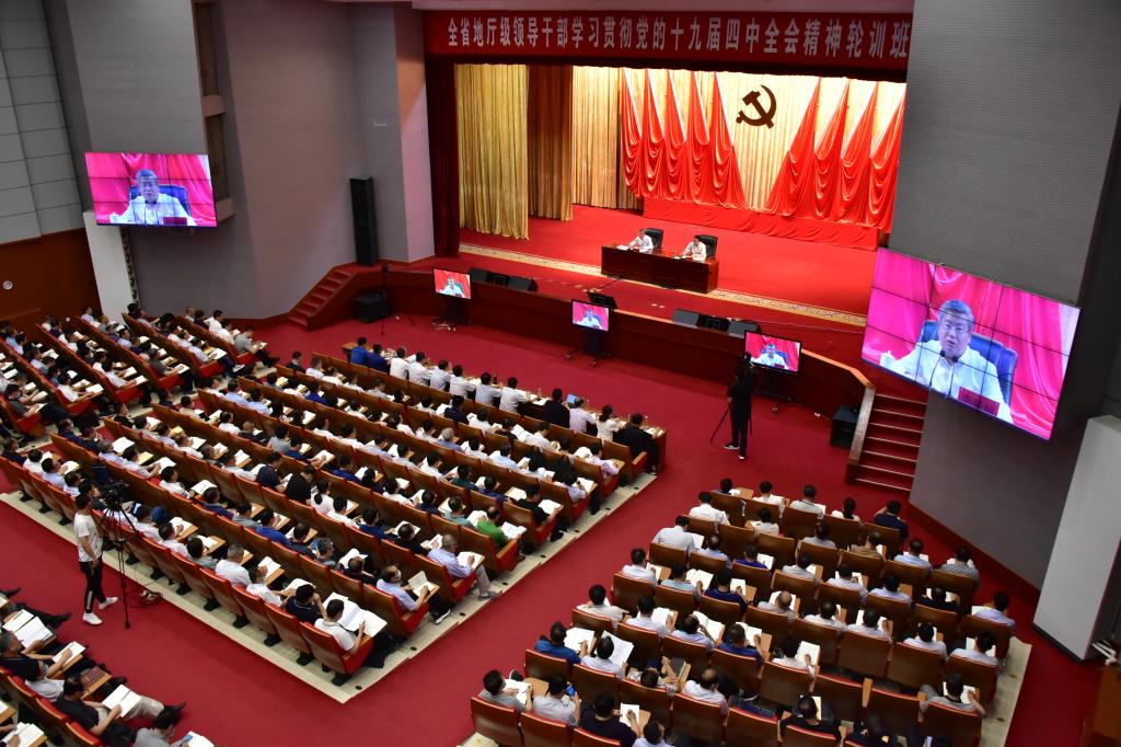 李荣灿为第二期全省地厅级领导干部学习贯彻党的十九届四中全会精神轮训班作专题辅导报告 刘进军主持报告会