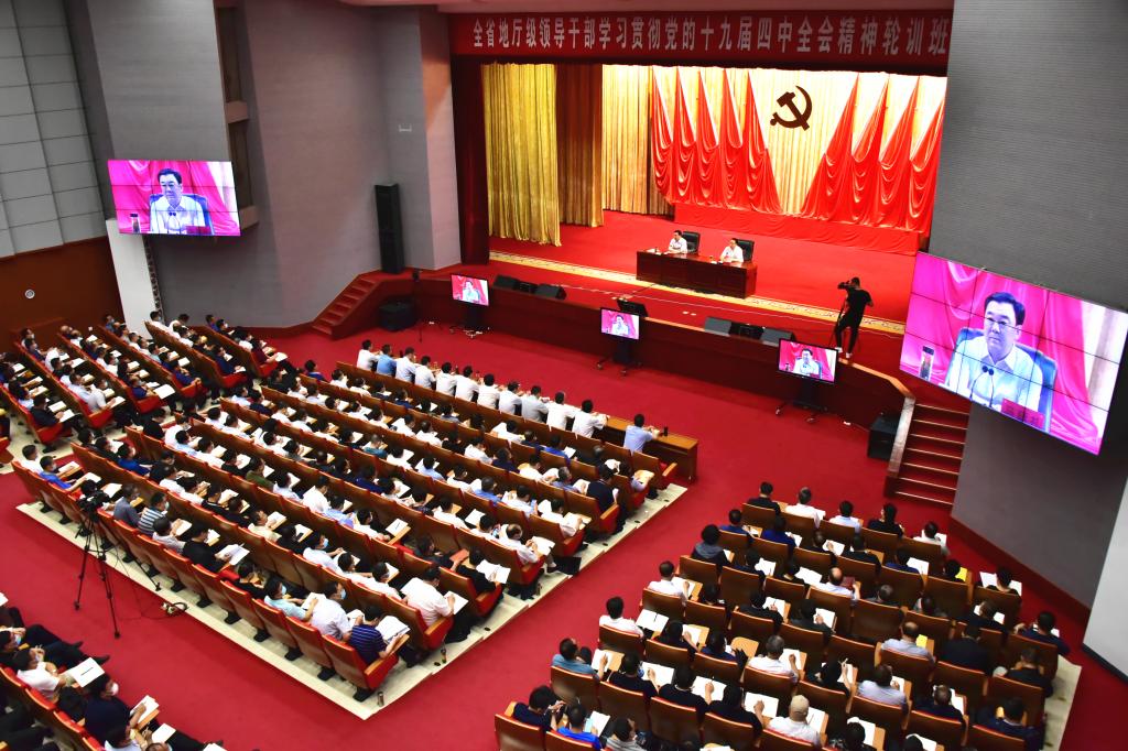 马廷礼为第一期全省地厅级领导干部学习贯彻党的十九届四中全会精神轮训班作专题辅导报告 刘进军主持报告会