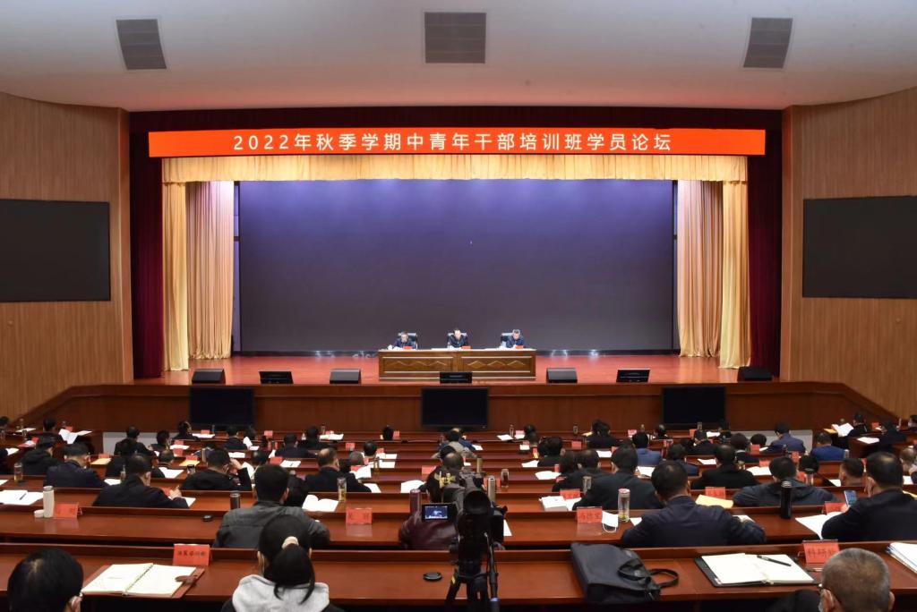 中青年干部培训班全体学员,办公室、教务处、科研处、公共管理教研部、社会和生态文明教研部、决策咨询部、进修部、培训部主要负责同志参加学员论坛。